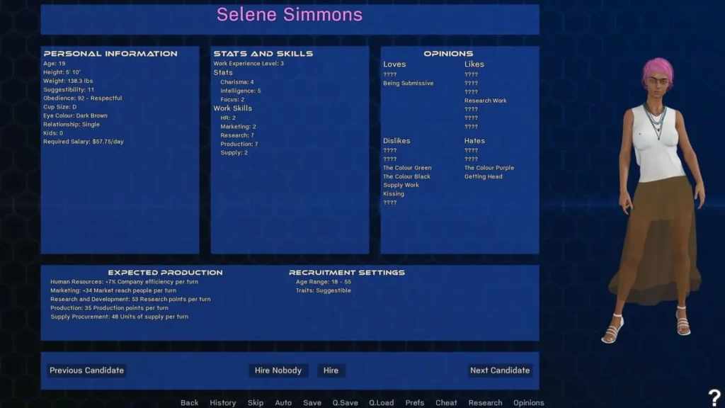 The core loop is deceptively simple. Each week, you have a set amount of Action Points (AP). You spend these on everything: researching new serums in the lab, talking to your employees to build relationships, or even exploring the city for new opportunities. It’s a constant, delicious tension. Do you use your precious AP to finally crack that new pheromone formula, or do you spend it comforting a stressed-out colleague whose loyalty you need?